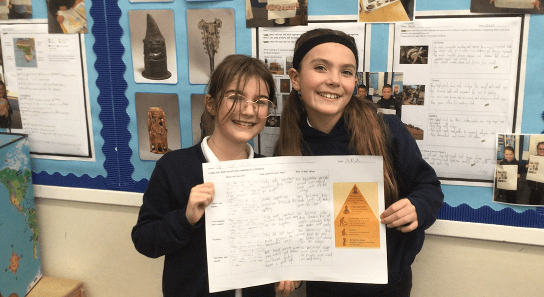 In History, Y5 teamed up in pairs to delve into the intriguing world of Benin’s hierarchy. Students explored every level of power and status –
