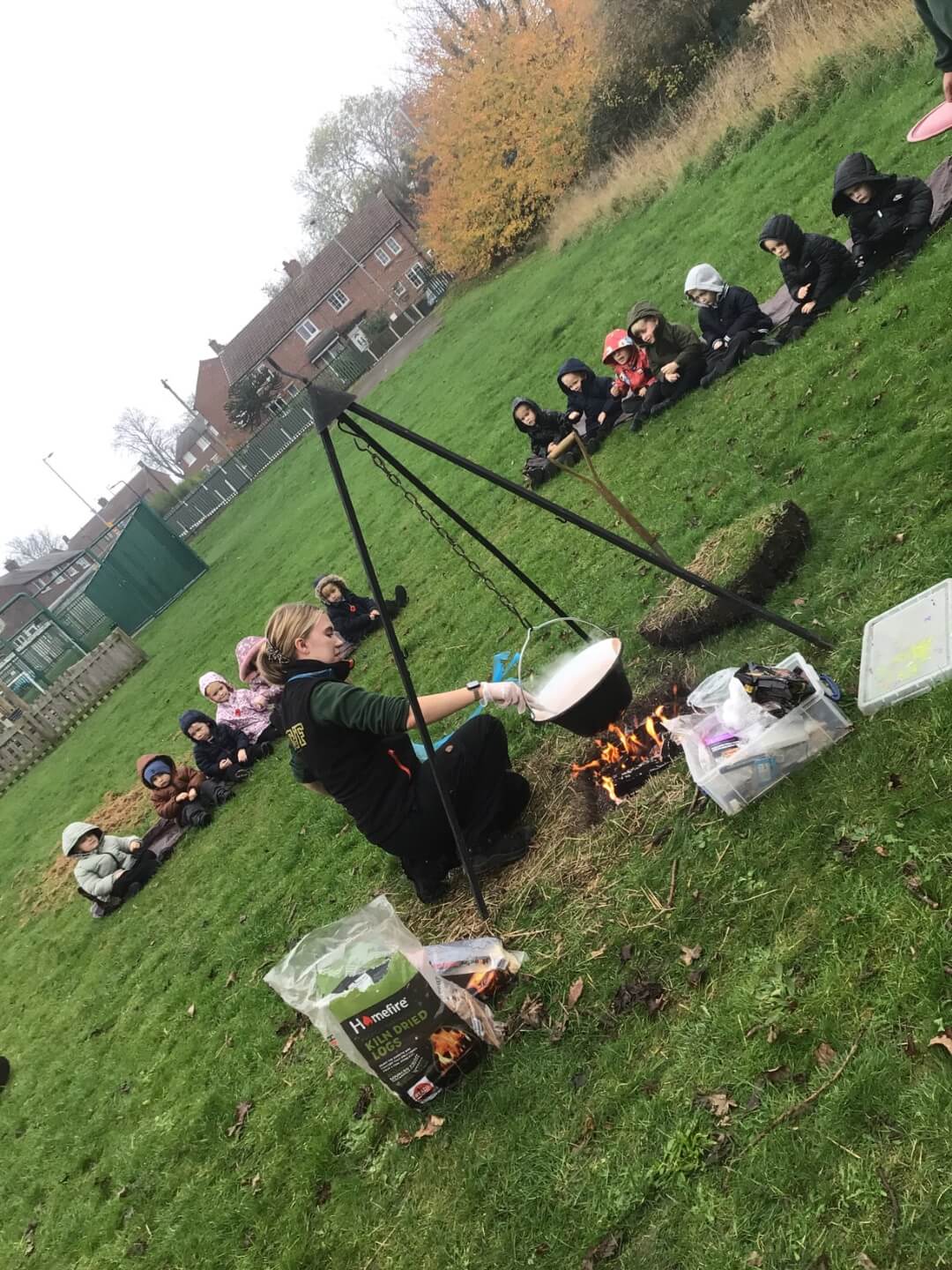 This week, FS1 enjoyed a special Pops Outdoor Adventure session! The children gathered around the campfire, where the lovely Pops team made delicious hot chocolate for everyone – complete with a tasty chocolate biscuit treat. They also shared their own bonfire and firework experiences, chatting excitedly about what they had seen and heard.