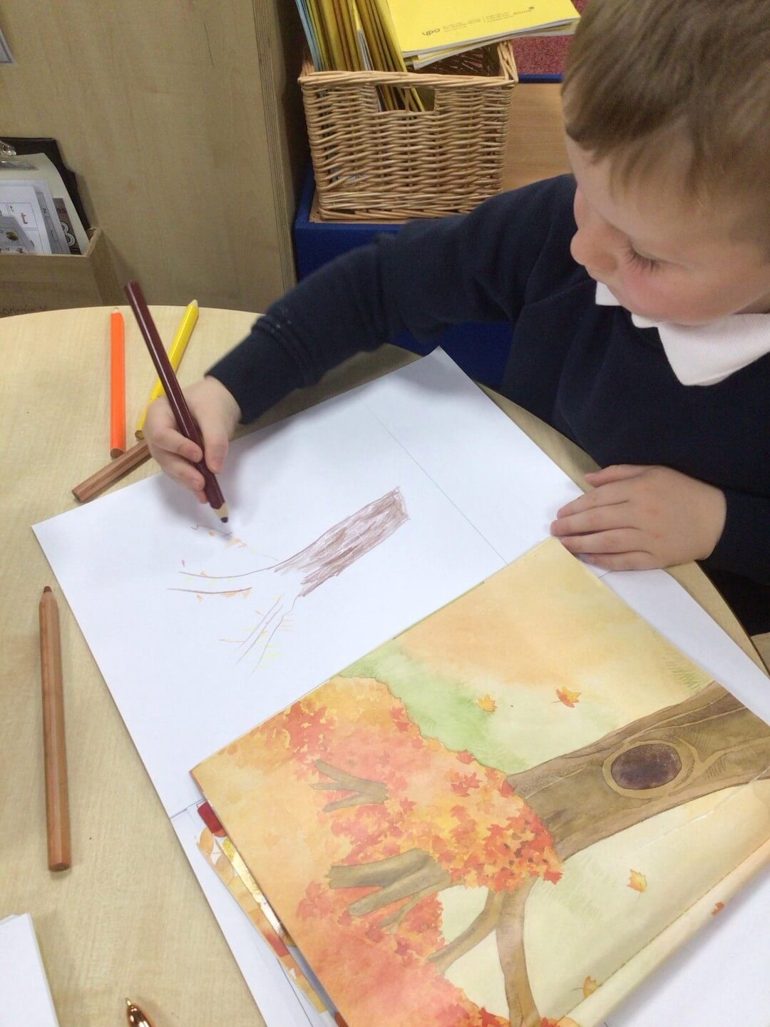 This week, Class 1 loved exploring the story We’re Going on a Leaf Hunt. They focused on the beautiful autumn colours of the falling leaves and used their scissor skills to give some of the leaves little “haircuts.” The children also practised drawing an autumn tree in their books and used wax crayons to make rubbings of different leaves.