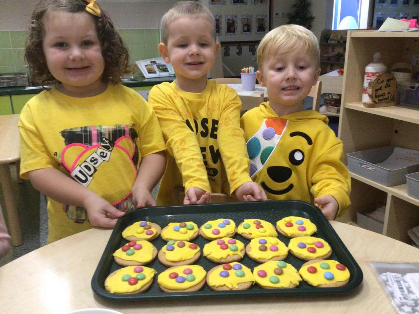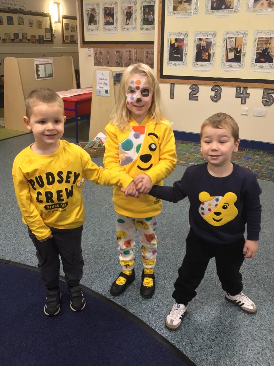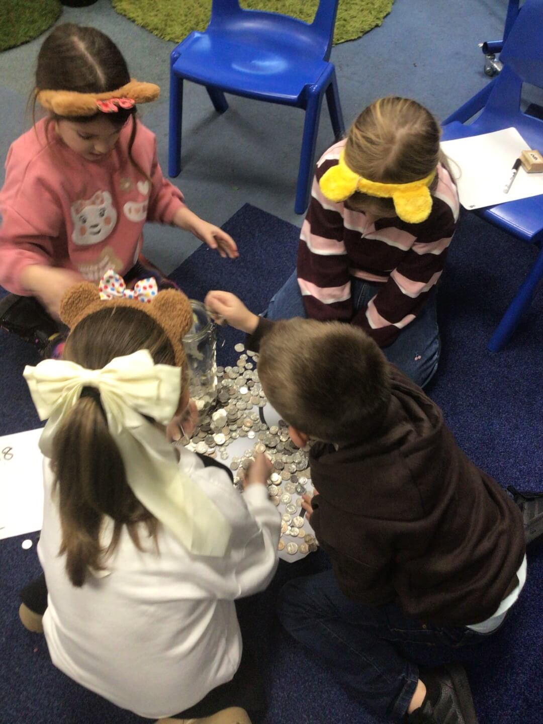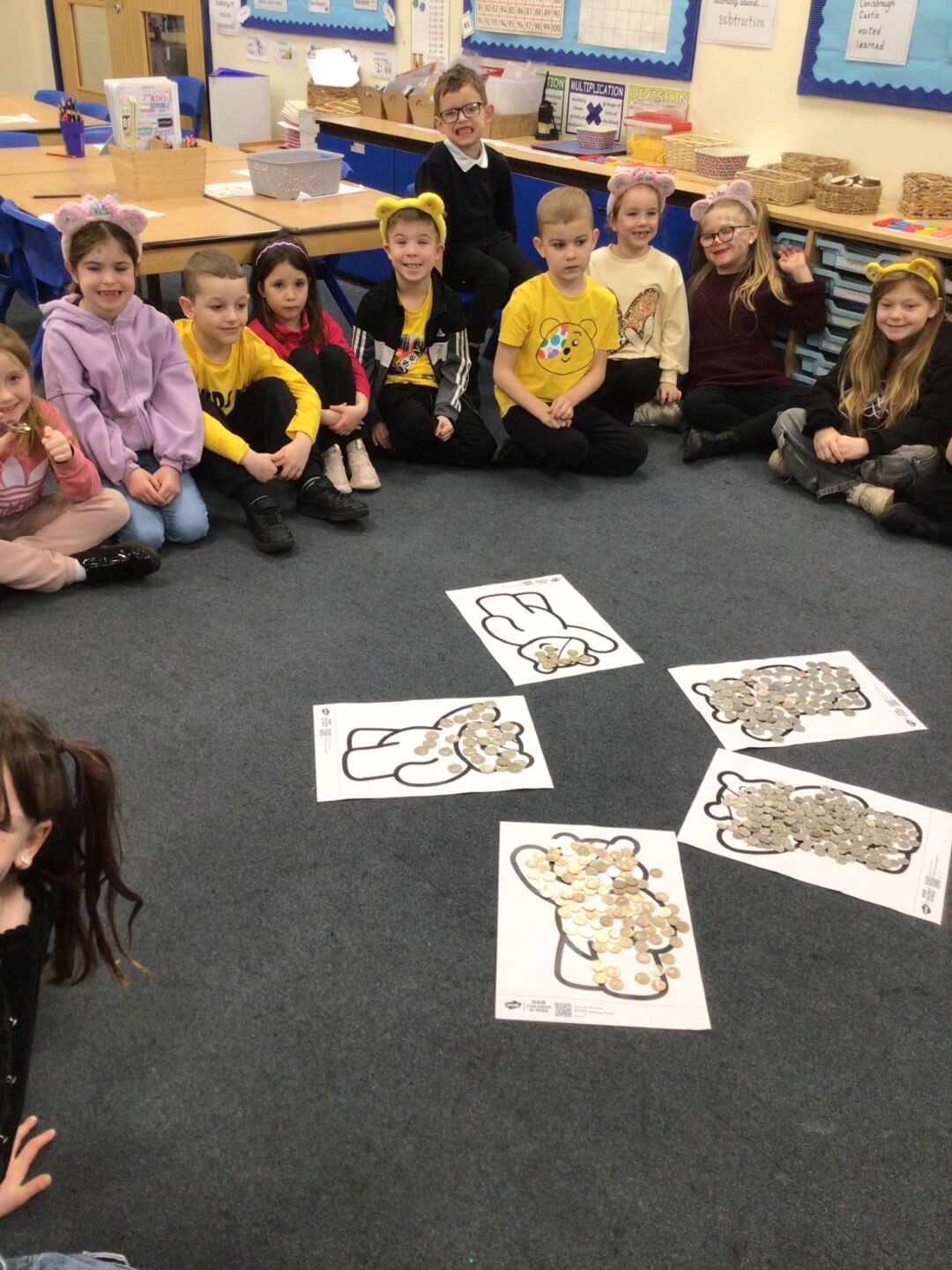 Last Friday, children across Monkwood celebrated Children in Need with a full day of themed activities. Each class got involved in their own exciting way – Class 1 enjoyed making spotty biscuits, while Classes 6 and 7 explored coins in Maths, discussing which were the least and most valuable before using their knowledge to count all of the silver coins they had collected for the charity. Class 2 painted their very own Pudsey bears and worked hard to raise awareness and funds for this fantastic cause.