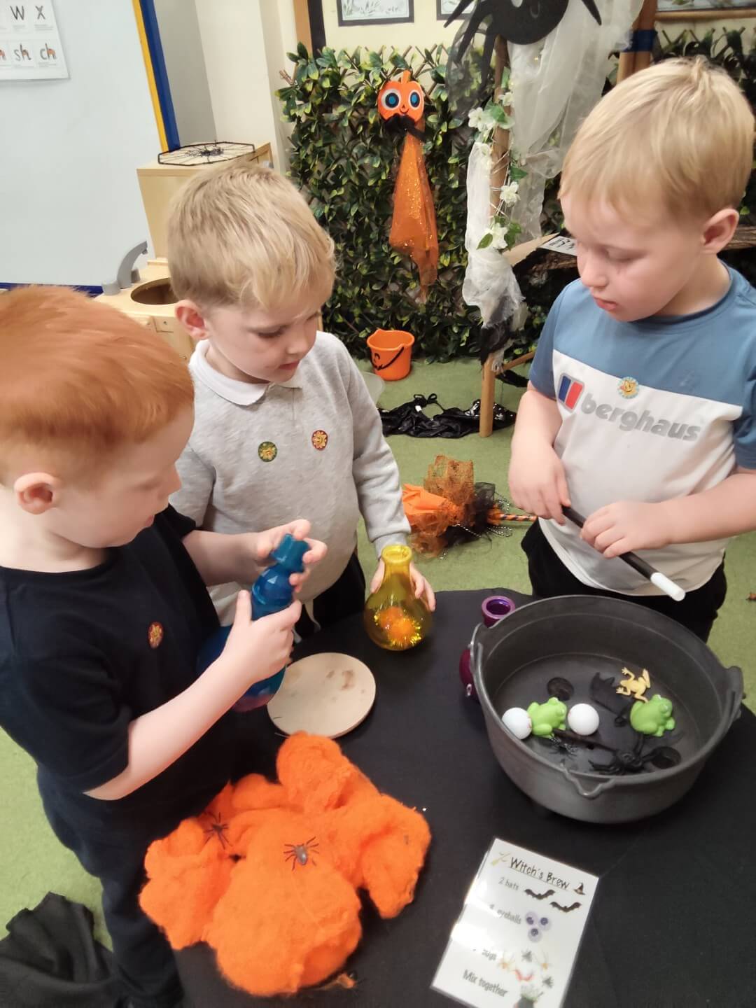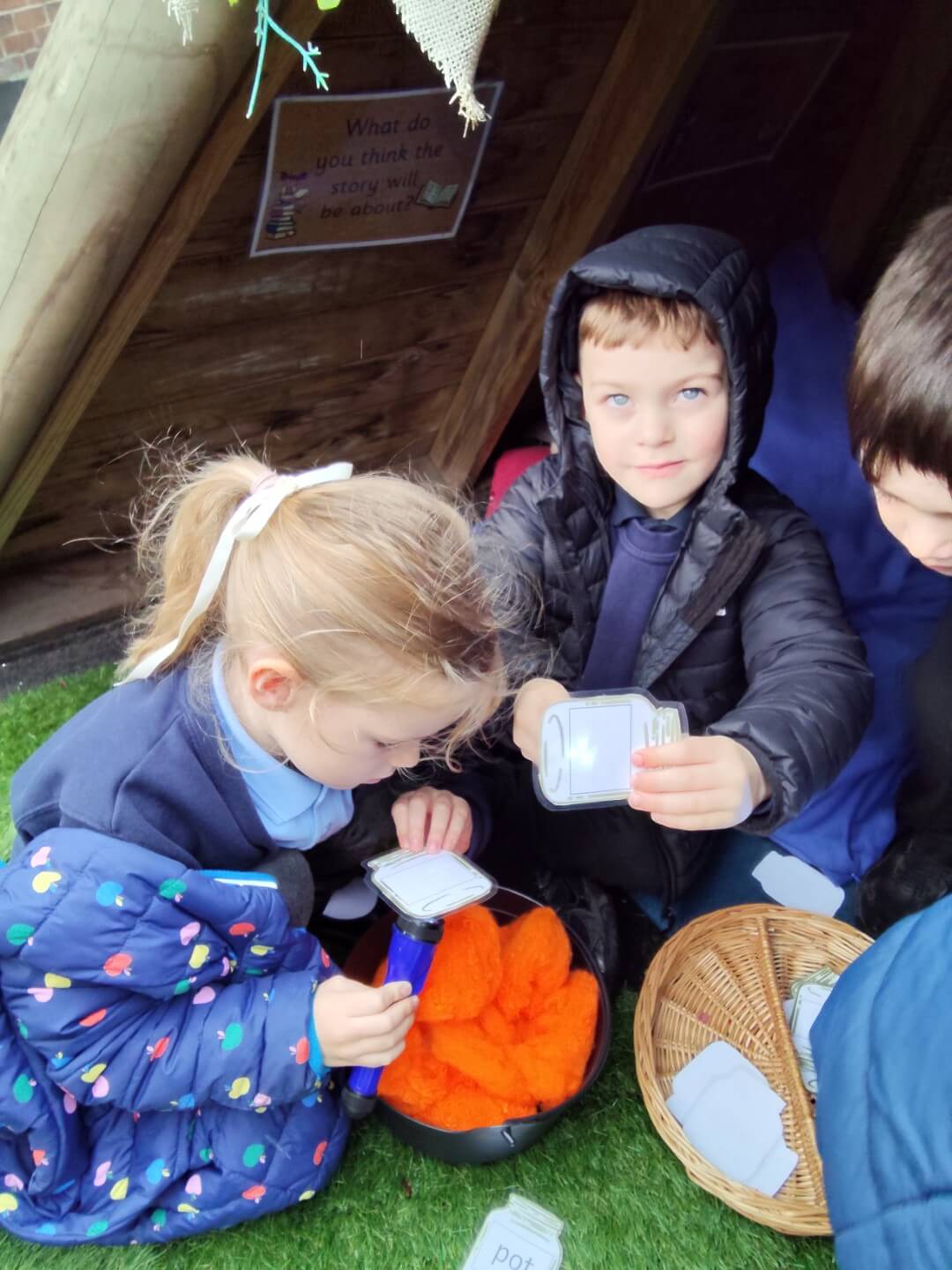 Last week, FS2 had a fabulous time exploring a range of activities inspired by the story ‘Room on the Broom’ by Julia Donaldson. They made their own potions, practised fine motor skills, searched for tricky words hidden in cauldrons filled with jelly and rice, and retold the story in their own words.