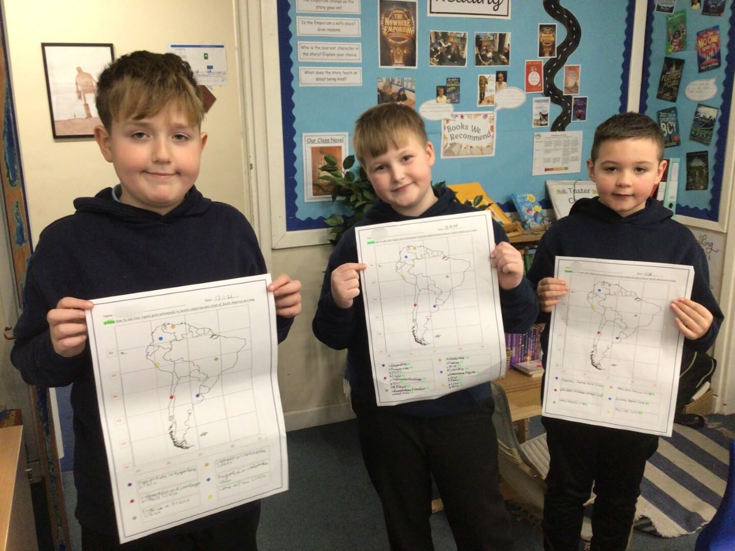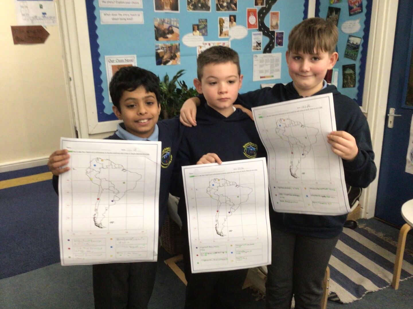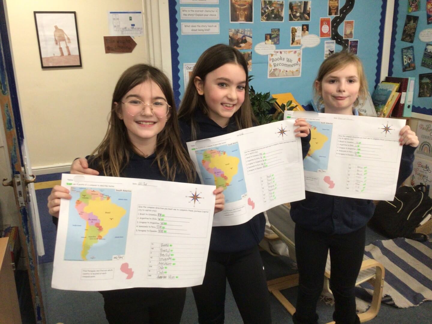 In Geography, Year 5 have been developing their map skills by using four-figure grid references to locate capital cities in South America. They have also been using the eight points of the compass to describe the direction of journeys across the continent, showing great focus and geographical understanding. Well done!