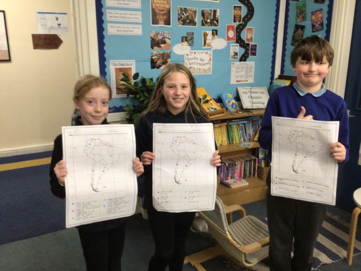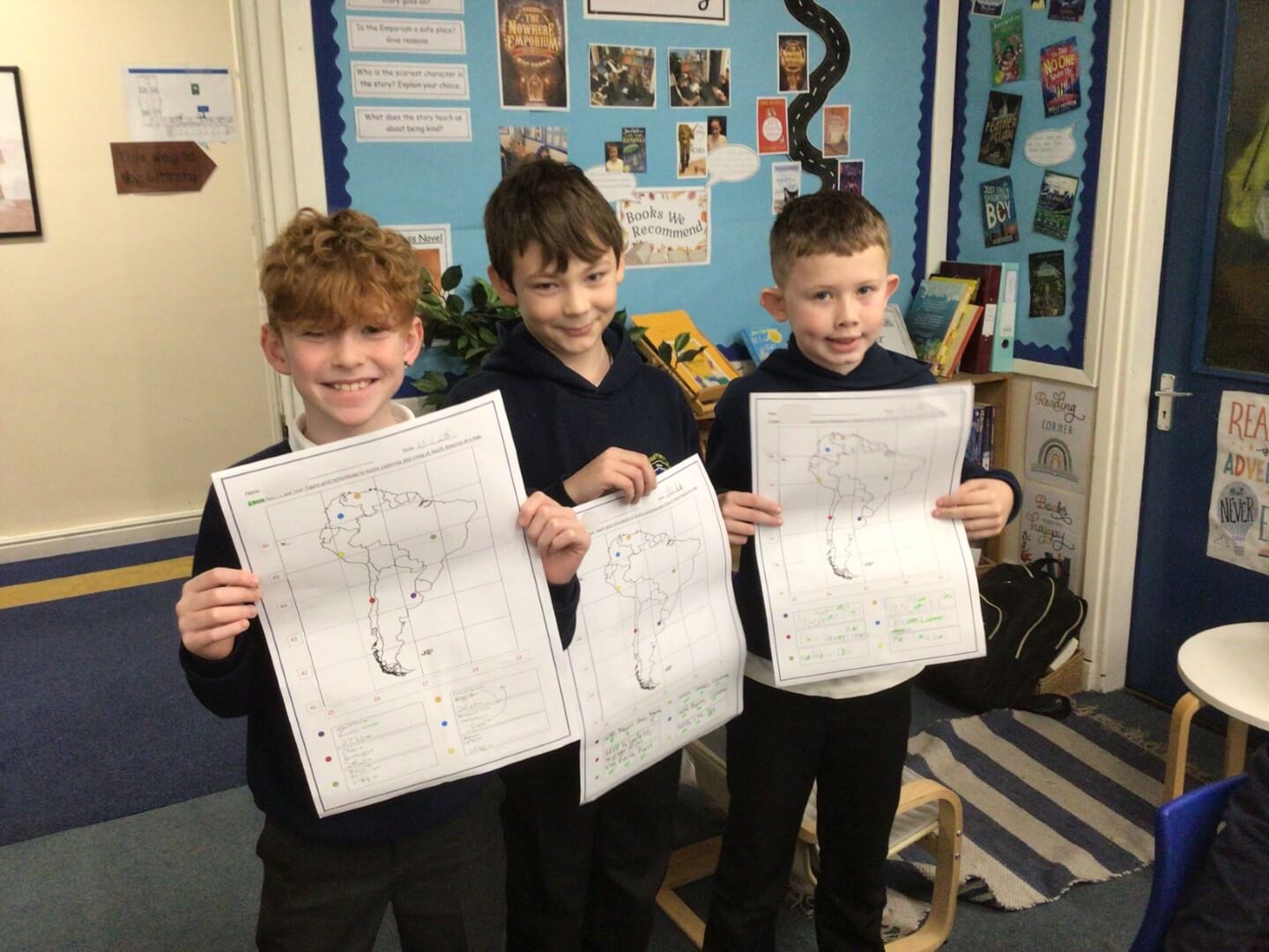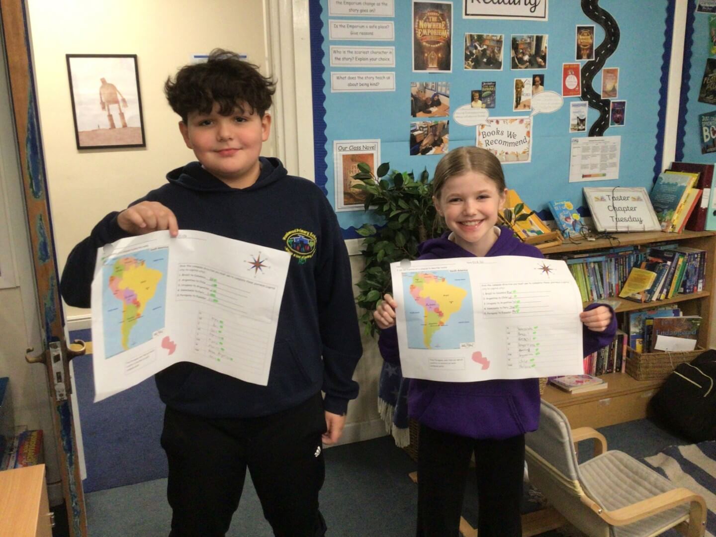 In Geography, Year 5 have been developing their map skills by using four-figure grid references to locate capital cities in South America. They have also been using the eight points of the compass to describe the direction of journeys across the continent, showing great focus and geographical understanding. Well done!