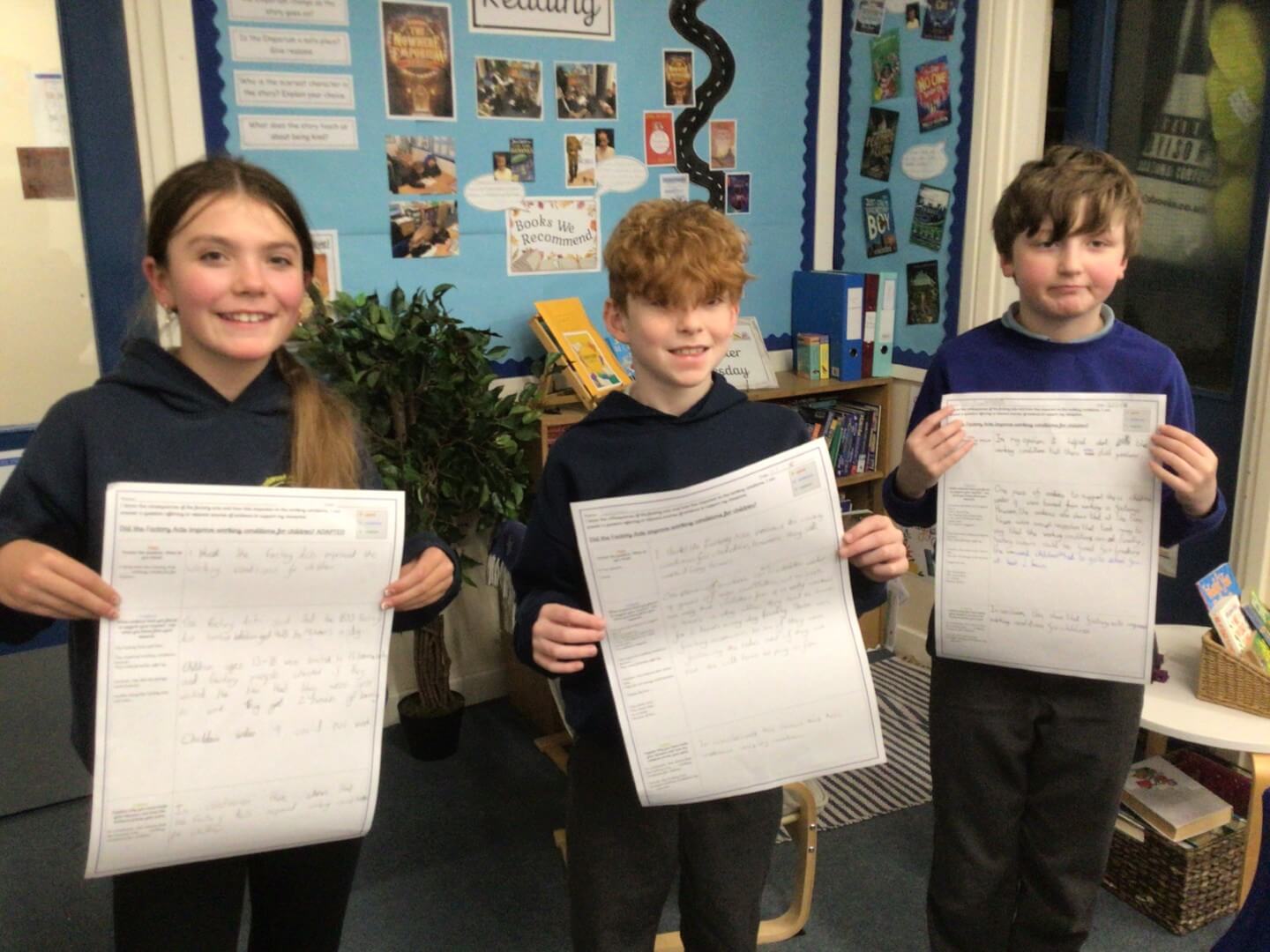 The children wrote PEE paragraphs to answer the question, ‘Did the Factory Acts improve working conditions for children?’. They really impressed us with their thoughtful answers, use of evidence, and the quality of their historical writing and critical thinking.