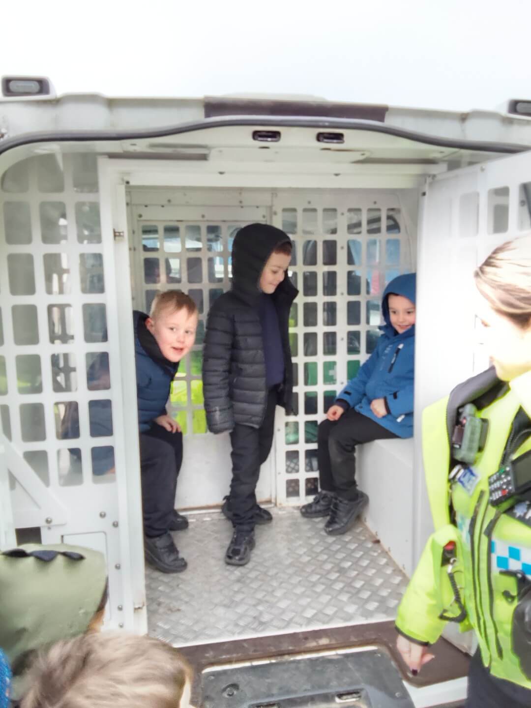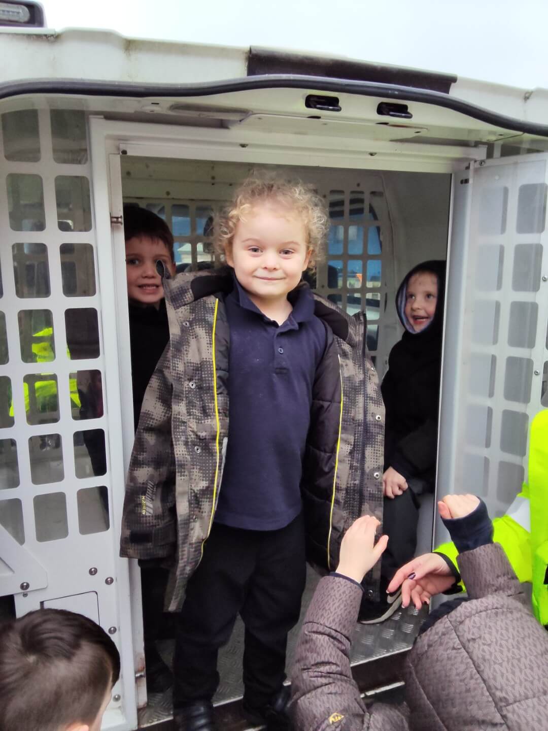 The children had the chance to ask lots of questions and explore the equipment that the officers use every day. They were especially excited to sit in the police van and hear the siren – it was loud and fun! This was a fantastic, hands-on way to bring learning to life.