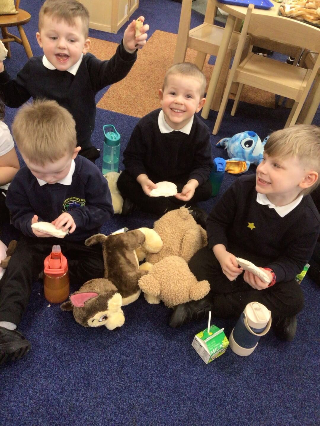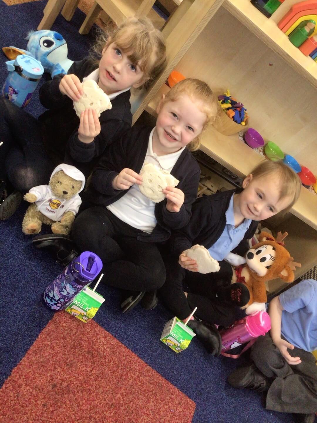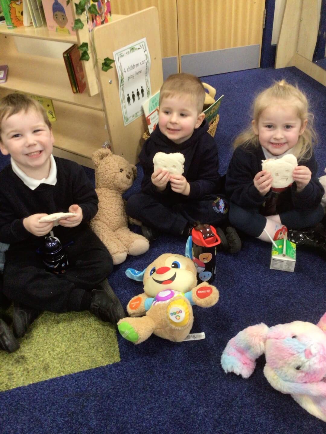 This week in FS1, the children enjoyed reading the story ‘We’re Going on a Bear Hunt’. To celebrate the book, they brought in their favourite teddy bears from home and made teddy bear-shaped jam sandwiches.