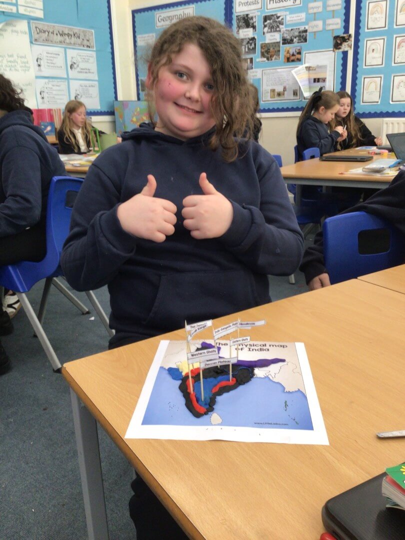 Class 12 have been exploring the physical geography of India in a fun and hands-on way. Using playdough, they created models of key landforms, including mountains, deserts, and plains. They then carefully labelled their maps and used string to represent the River Ganges flowing through the landscape.